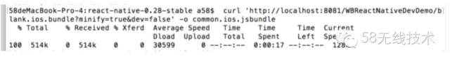 (2)通过curl命令将blank.ios.js文件编译成common.ios.jsbundle。笔者在本地的执行命令为: