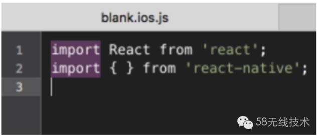 (1)新建一个blank.ios.js文件,在文件中仅需引入react及react-native,注意不要包含任何业务代码,具体代码如下截图: