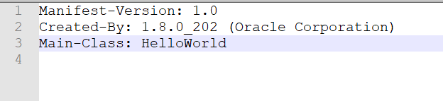 在第三行写入 Main-Class: HelloWorld ,保存 (压缩软件会提醒文件已被修改,是否需要更新到压缩包中,点确认)
