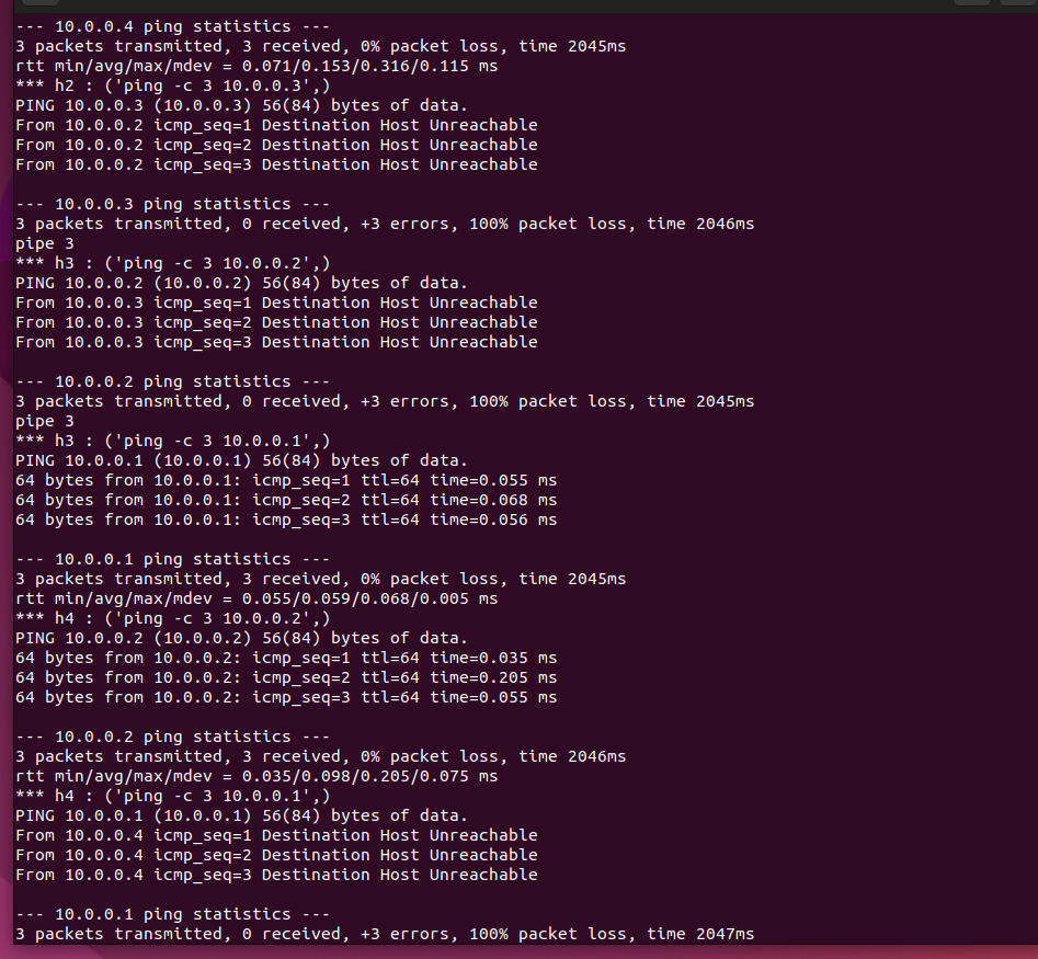 h4.cmdPrint( 'ping -c 3 ' + h1.IP() )