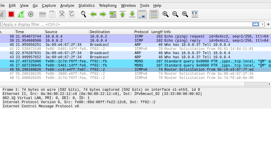 s2.cmd('sudo ovs-ofctl -O OpenFlow13 add-flow s2 priority=1,in_port=1,actions=push_vlan:0x8100,set_field:4096-\>vlan_vid,output:3')