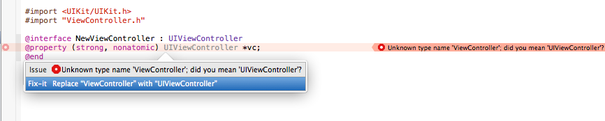 #import <UIKit/UIKit.h> @class NewViewController; @interface ViewController : UIViewController @property (strong, nonatomic) NewViewController *nvc; @end