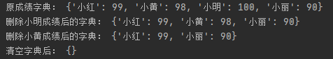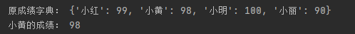 print("小黄的成绩:", dict_score["小黄"]) # 打印小黄的成绩