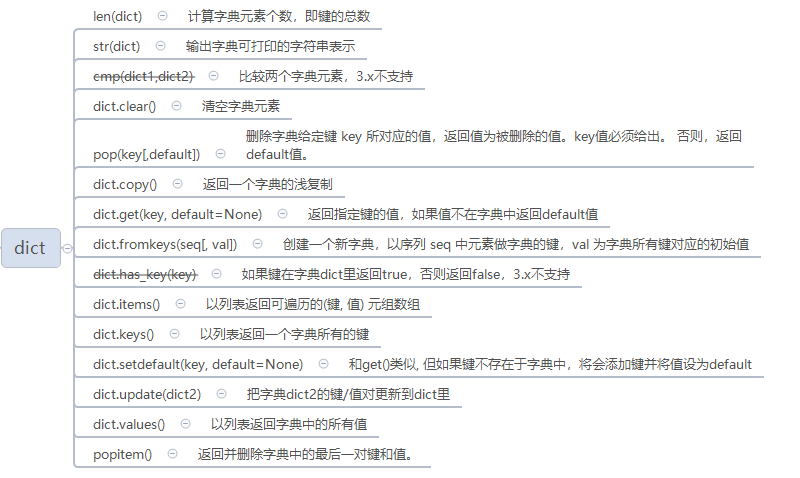- 字典值可以没有限制地取任何python对象,既可以是标准的对象,也可以是用户定义的,但键不行。