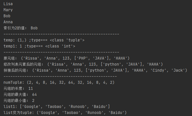 T = ('Rissa', 'Anna', 123, ['PHP', 'JAVA'], 'HAHA')