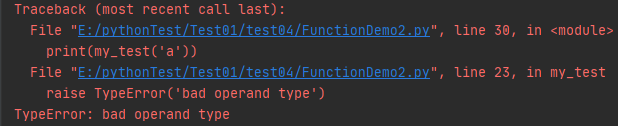 def my_test(x): if not isinstance(x, (int, float)): raise TypeError('bad operand type') if x >= 0: return x else: return -x print(my_test('a'))