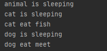 animal = Animal() animal.sleep() cat = Cat() cat.sleep() cat.eat() dog = Dog() dog.sleep() dog.eat()