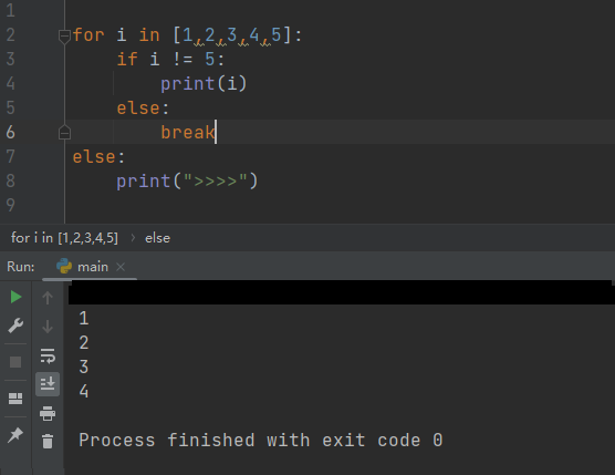 在python中,for循环可以跟着一个else进行逻辑处理,for循环正常结束则执行else,break结束的话,不执行else。