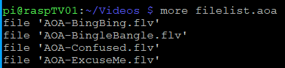 ffmpeg -f concat -i filelist.aoa -c copy AOA_MVs.flv