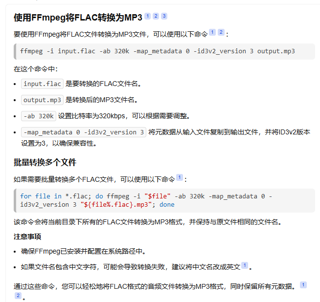 for file in *.flac; do ffmpeg -i "$file" -ab 320k -map_metadata 0 -id3v2_version 3 "${file%.flac}.mp3"; done