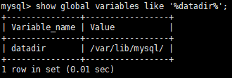 可通过命令查询数据目录位置: show global variables like '%datadir%';