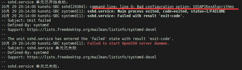/etc/ssh/sshd_config 把文件中关于GSSAPIKexAlgorithms 的行都注释掉
