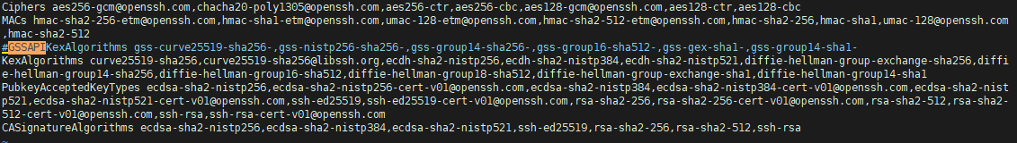 /etc/crypto-policies/back-ends/openssh.config 相关GSSAPIKexAlgorithms的行也注释掉