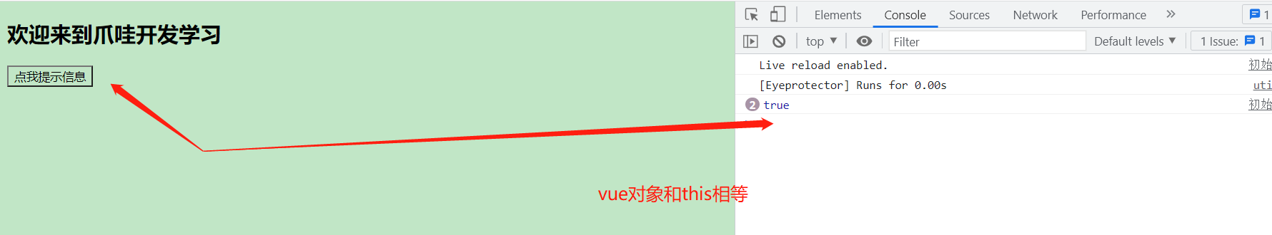 那如何去验证它呢,可以判断vue对象和this是否相等。下图可看是相等的。