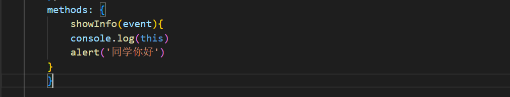 2)事件的回调需要配置在methods对象中,最终会在vm上