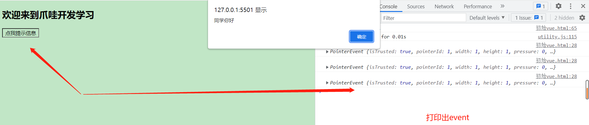 5)@click=“demo”和@click=“demo($event)”效果一致,但后者可以传参。