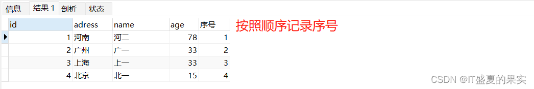sql:SELECT user.*,row_number() over(ORDER BY age desc) as '序号'