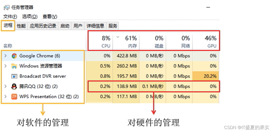 可以发现,他有一部分是对软件的管理,有一部分是对硬件的管理。