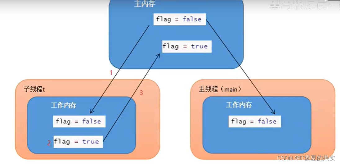 2)将flag值更改为true,但是这个时候flag值还没有写回主内存