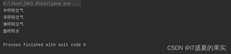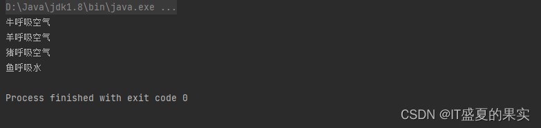 但是这个时候又增加了一种动物鱼,鱼并不是呼吸空气,而是活在水里面的。那么就需要将类进行拆分。分为陆生动物类Terrestrial,水生动物Aquatic,代码如下: