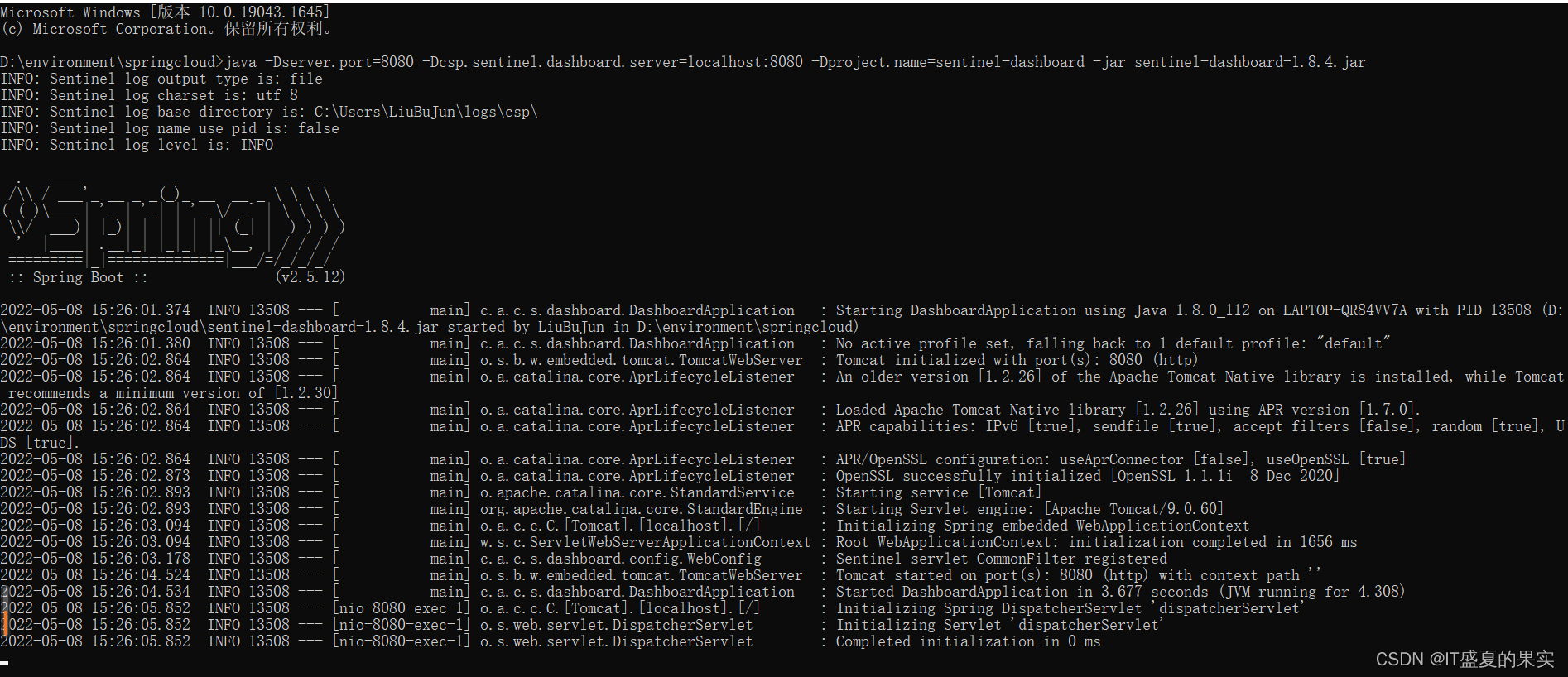 java -Dserver.port=8080 -Dcsp.sentinel.dashboard.server=localhost:8080 -Dproject.name=sentinel-dashboard -jar sentinel-dashboard-1.8.4.jar