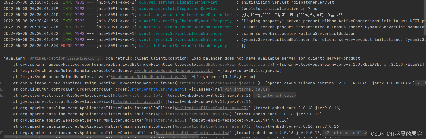 4)调用(若想模拟feign调用异常,只需关闭商品微服务即可)