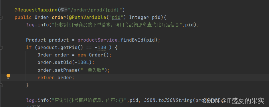 //一旦feign远程调用出现问题,就会进入当前类中同名方法,执行容错逻辑