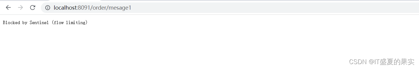 一秒钟之内点击多次,就会触发 Sentinel异常,随后进行访问:http://localhost:8091/order/message。