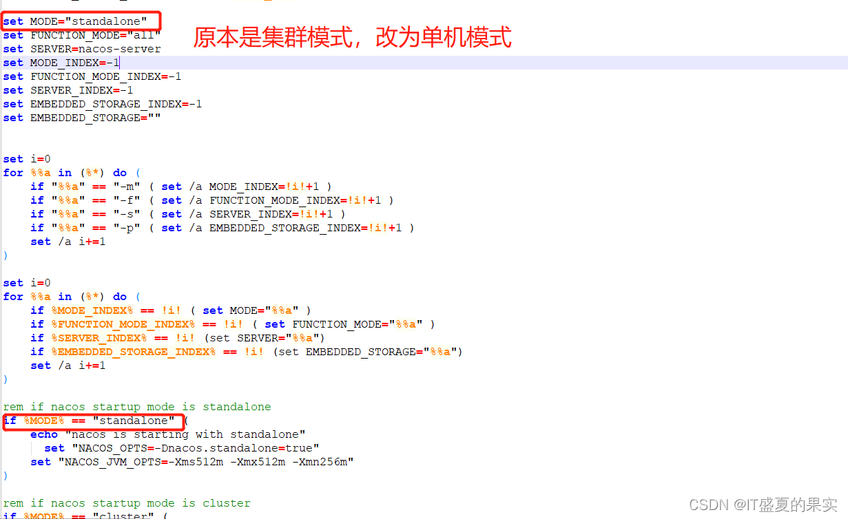 打开之后,不出意外的话,会报错。因为nacos的默认启动方式是集群模式,所以需要将其改为单机模式后重新打开。