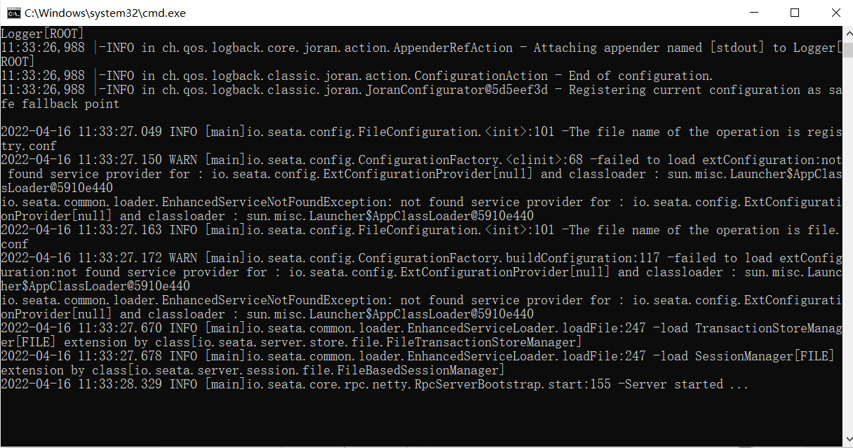 1)启动TCService:找到seata服务的bin目录,双击bat文件