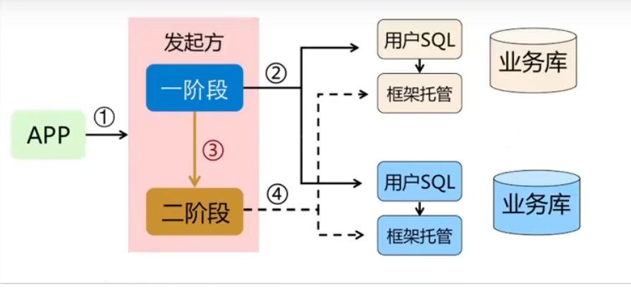 在AT模式下,用户只需关注自己的业务sql,用户的业务sql作为第一阶段,Seata框架会自动生成事务的二阶段的提交和回滚操作。