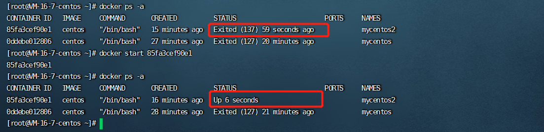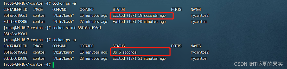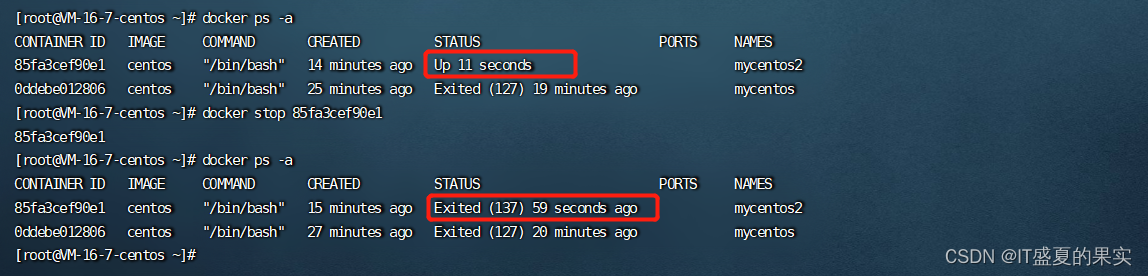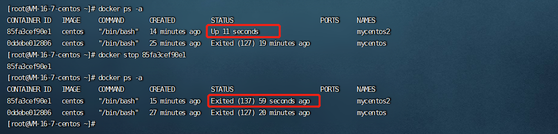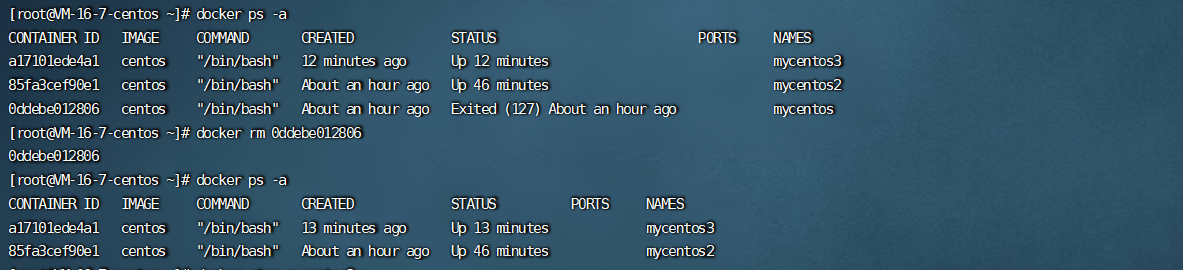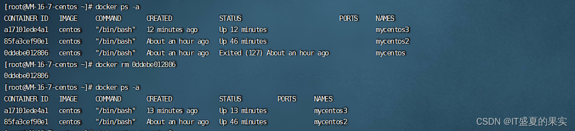 docker run -it --name=容器mycentos1 centos /bin/bash