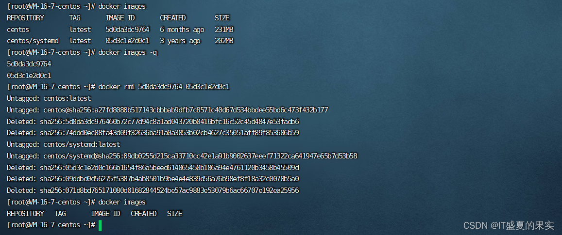 删除所有的镜像:docker rmi '5d0da3dc9764 05d3c1e2d0c1'
