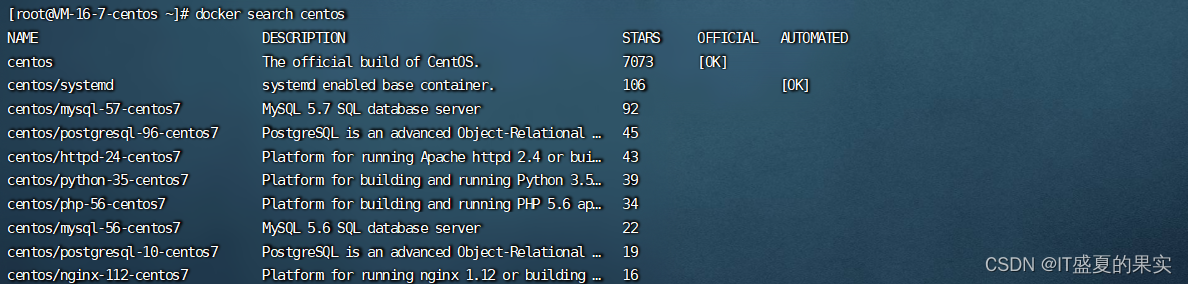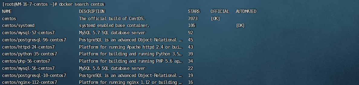 - AUTOMATED:自动构建,表示该镜像由Docker Hub自动构建流程创建的