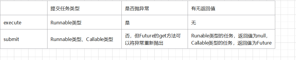 execute会直接抛出任务执行时异常,submit则不会抛出异常,但可以通过Future的get方法将任务执行时的异常重新抛出。