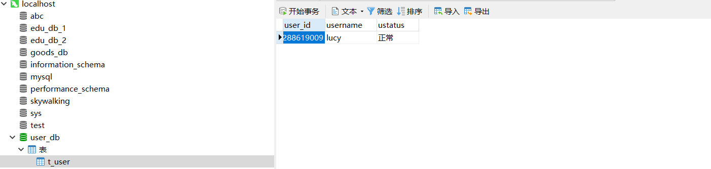 2022-03-13 15:26:02.621 INFO 17340 --- [ main] ShardingSphere-SQL : Actual SQL: m0 ::: INSERT INTO t_user (username, ustatus, user_id) VALUES (?, ?, ?) ::: [lucy, 正常, 709788487288619009]