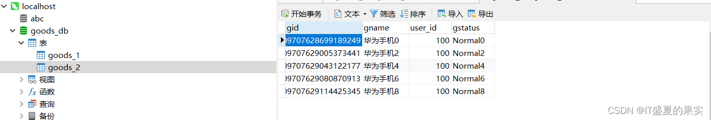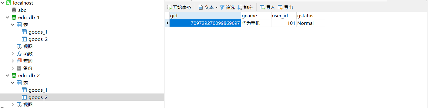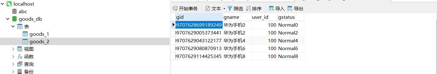3)约定规则:如果添加课程id是偶数就把数据添加goods_1,如果是奇数就添加到goods_2。
