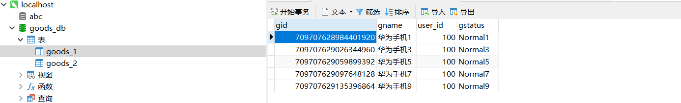 #指定表分片策略 约定gid值偶数添到goods_1表,如果gid是奇数添加到goods_2表