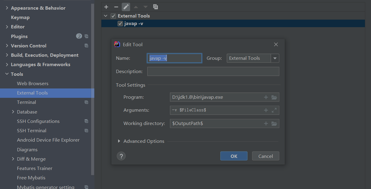 Program:D:\jdk1.8\bin\javap.exe(找到自己jdk中bin目录下是javap.exe)