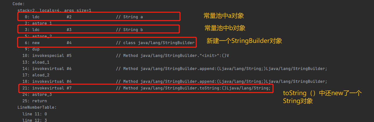 String str1 = "a"; String str2 = "b"; String str3 = str1 + str2;分析其字节码以上代码等价于