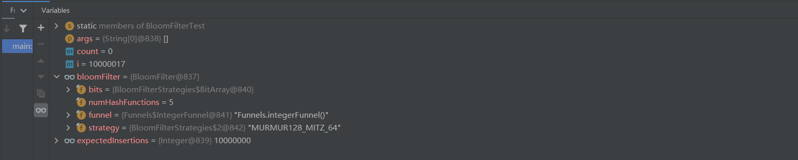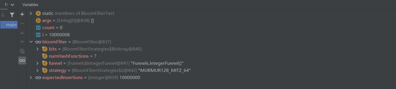 private static BloomFilter<Integer> bloomFilter = BloomFilter.create(Funnels.integerFunnel(), expectedInsertions, fpp);