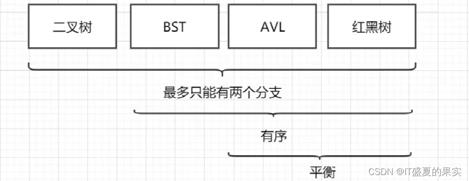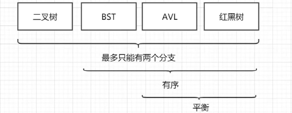 二叉树,BST树(二叉搜索树)、AVL树、红黑树的特点: