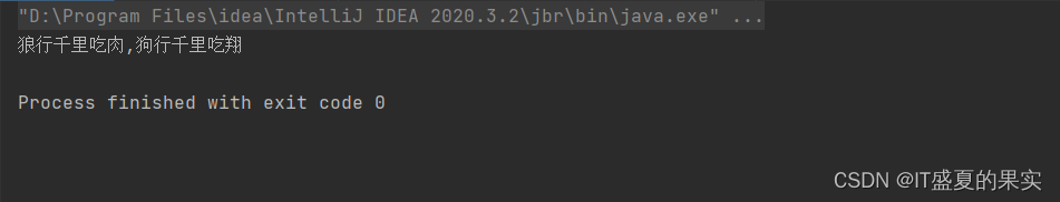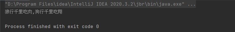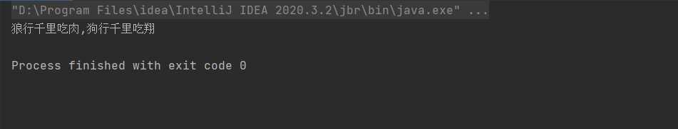 System.out.println("狼行千里吃肉,狗行千里吃翔");