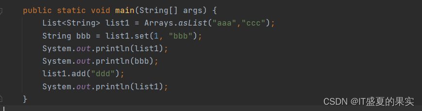 list1.set(1, "bbb"); // list1.add("ccc")或list1.set(1, "bbb") 都会报UnsupportedOperationException异常