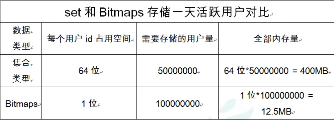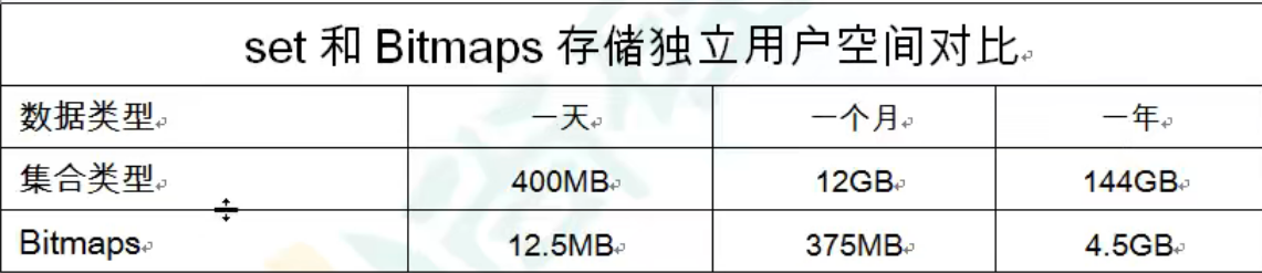 注意:在第一次初始化Bitmaps时,假如偏移量非常大,那么整个初始化过程执行比较慢,可能会造成redis的阻塞