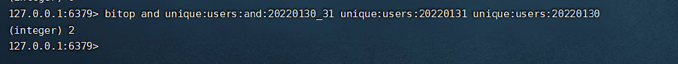 bitop and unique:users:and:20220130_31 unique:users:20220131 unique:users:20220130