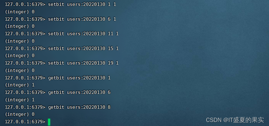 getbit<key><offest>获取Bitmaps中某个偏移量中的值