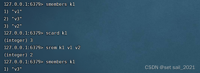 srem <key> <value1> <value2> ...删除集合中的某个元素