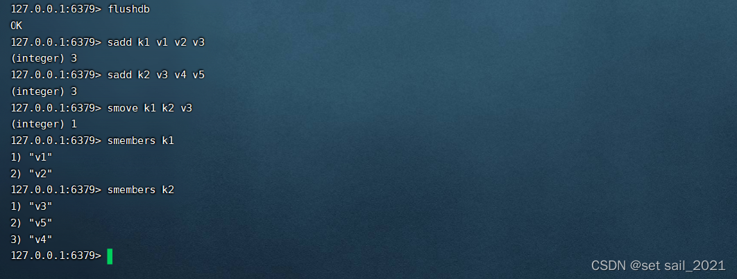 smove <source> <destination> value将集合中一个值从一个集合移动到另外一个集合