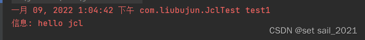 由此我们发现,在项目中只引入了jcl依赖,没有引入其他具体日志实现的情况下(其实这里会自动引入jdk自带的jdk14日志依赖)会进行正常的日志打印输出。